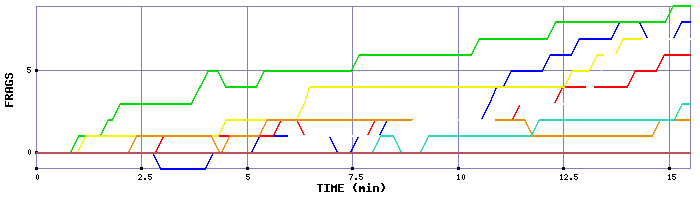 Rank Player Color Bar Score Frags Kills Deaths Suicides Eff. Avg SPH Avg TTL Time Sprees