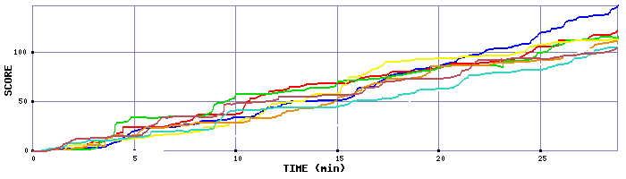 Rank Player Color Bar Score Frags Kills Deaths Suicides Eff. Avg SPH Avg TTL Time Sprees