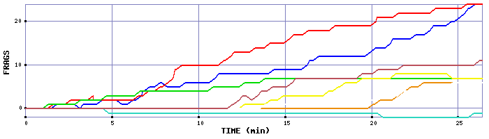Rank Player Color Bar Score Frags Kills Deaths Suicides Eff. Avg SPH Avg TTL Time Sprees