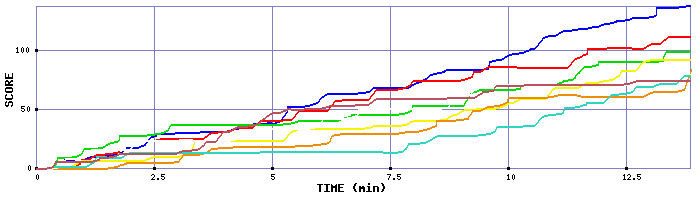 Rank Player Color Bar Score Frags Kills Deaths Suicides Eff. Avg SPH Avg TTL Time Sprees