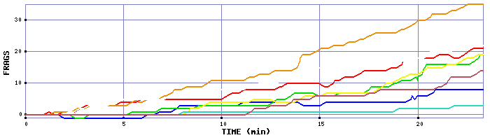 Rank Player Color Bar Score Frags Kills Deaths Suicides Eff. Avg SPH Avg TTL Time Sprees