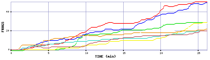 Rank Player Color Bar Score Frags Kills Deaths Suicides Eff. Avg SPH Avg TTL Time Sprees