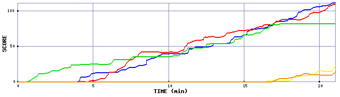 Rank Player Color Bar Score Frags Kills Deaths Suicides Eff. Avg SPH Avg TTL Time Sprees
