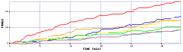 Rank Player Color Bar Score Frags Kills Deaths Suicides Eff. Avg SPH Avg TTL Time Sprees