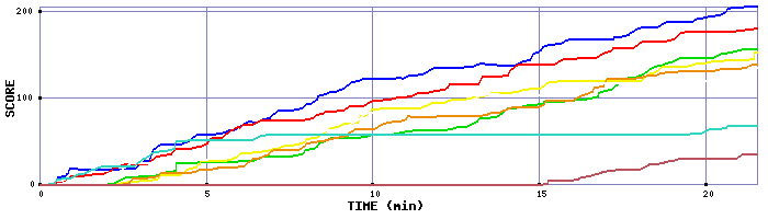 Rank Player Color Bar Score Frags Kills Deaths Suicides Eff. Avg SPH Avg TTL Time Sprees