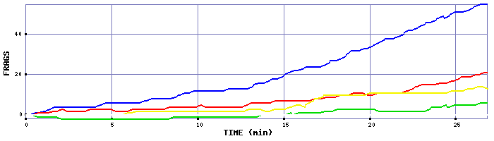 Rank Player Color Bar Score Frags Kills Deaths Suicides Eff. Avg SPH Avg TTL Time Sprees